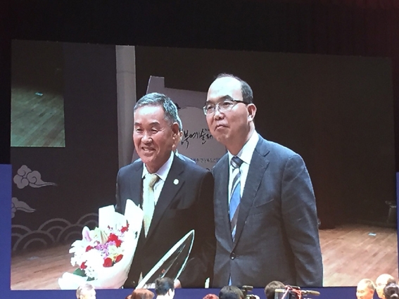 ↑↑ 허씨비단직물 허호씨 경북문화상수상- 왼쪽부터 허호 대표-윤종진 경상북도 행정부지사.